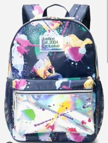 Girls 17" Laptop Backpack Iridescent Blue Multi-Color Splatter
