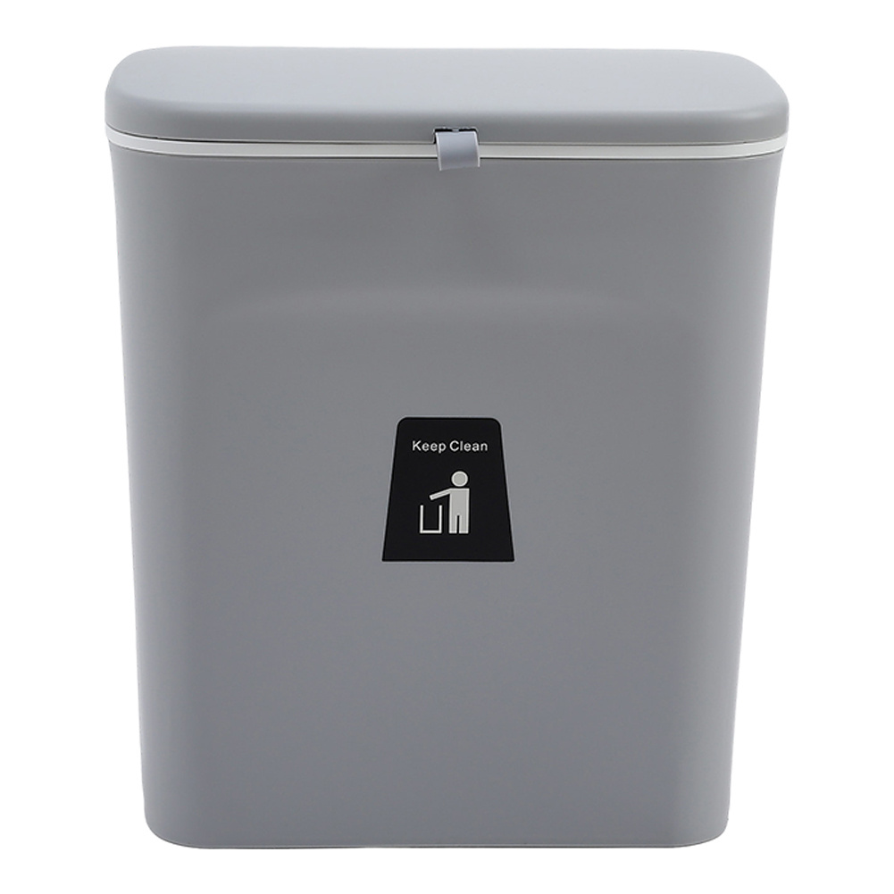 9L Hanging Garbage Bin Waste Store Trash Plastic Push Wall Mounted Recycling Kitchen Rubbish with Lid