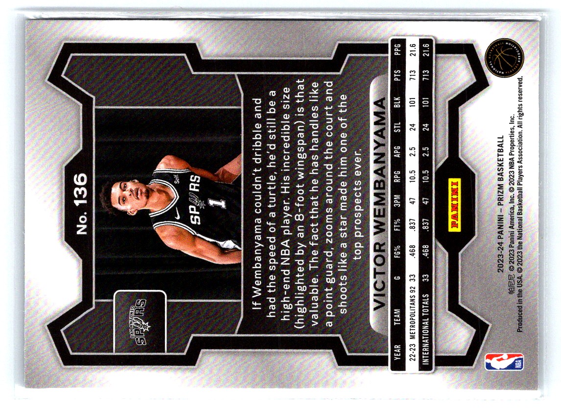 | 2023-24 2023-24 Panini Prizm - #136 Victor Wembanyama (RC) Victor Wembanyama | ||||||||||||||||||