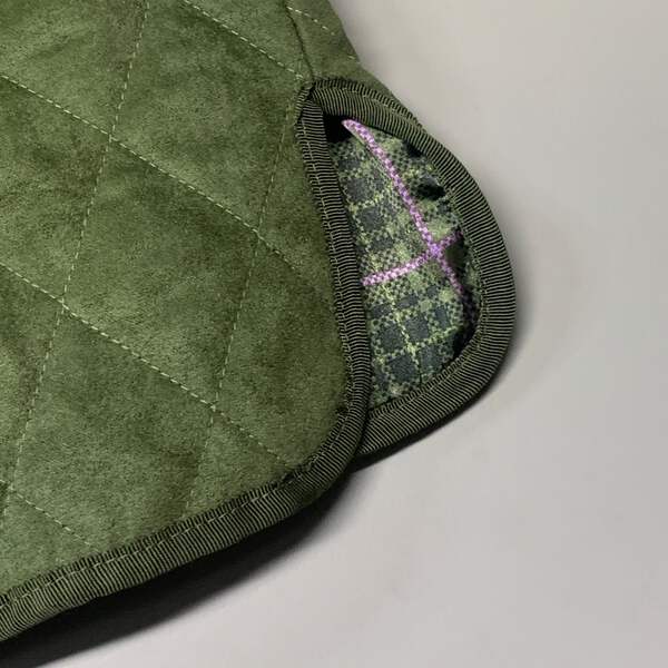 Color: Basil Outer Layer With a Plaid Pink, Black and Green Inside Layer