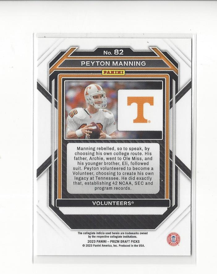 2023 Panini Prizm Draft Picks #82 Peyton Manning Tennessee Colts Broncos