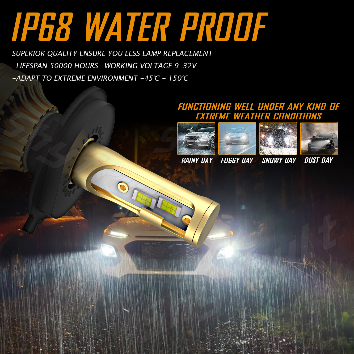 Beam Type: High beam & Low beam& Fog beam