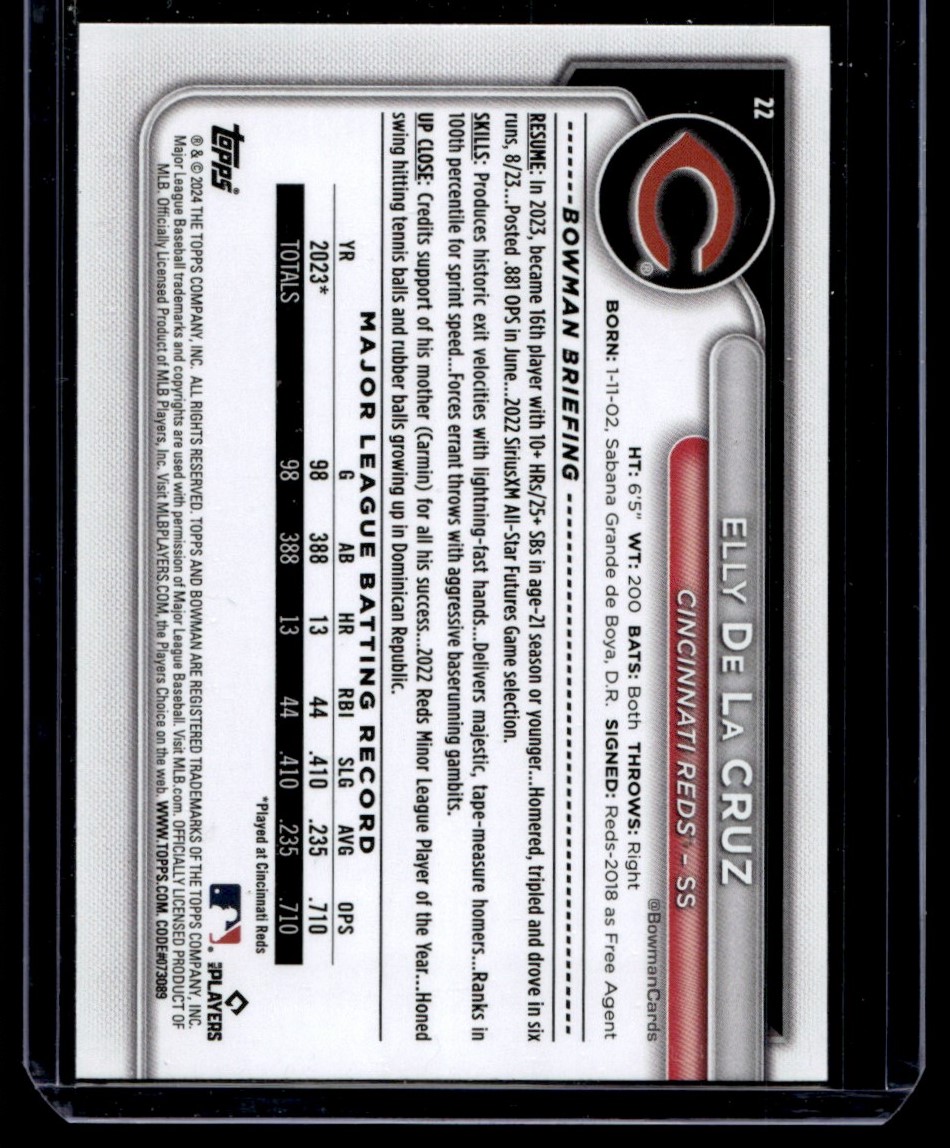 | 2024 Bowman Elly De La Cruz RC Cincinnati Reds #22 |