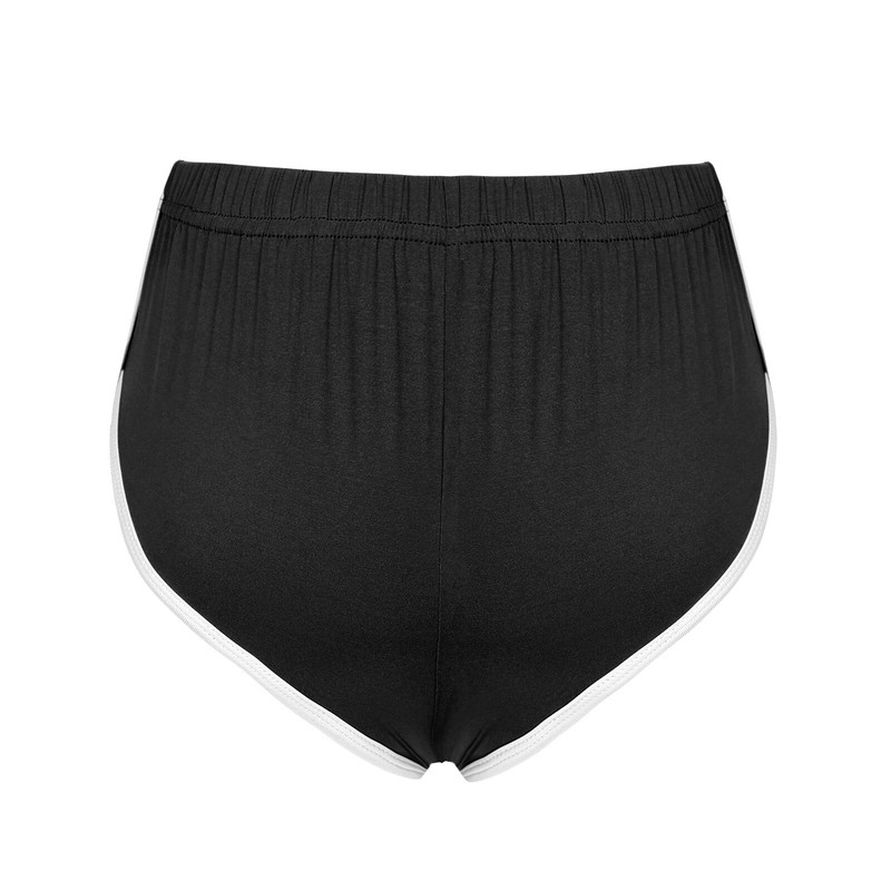 Mid-rise with elastic waistband for comfy fit, with contrast white piping and dolphin hem, makes you look slimmer.