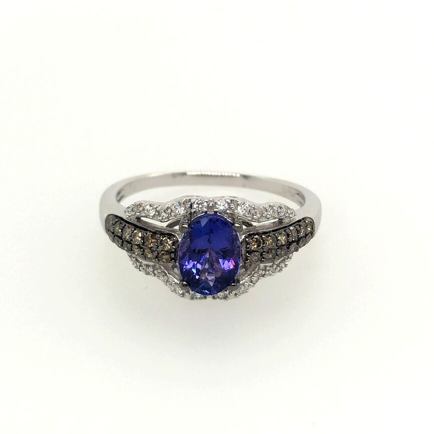 Le Vian Chocolatier® Ring featuring 1 cts. Blueberry Tanzanite®, 1/4 cts. Chocolate Diamonds® , 1/8 cts. Vanilla Diamonds® set in 14K White Gold
