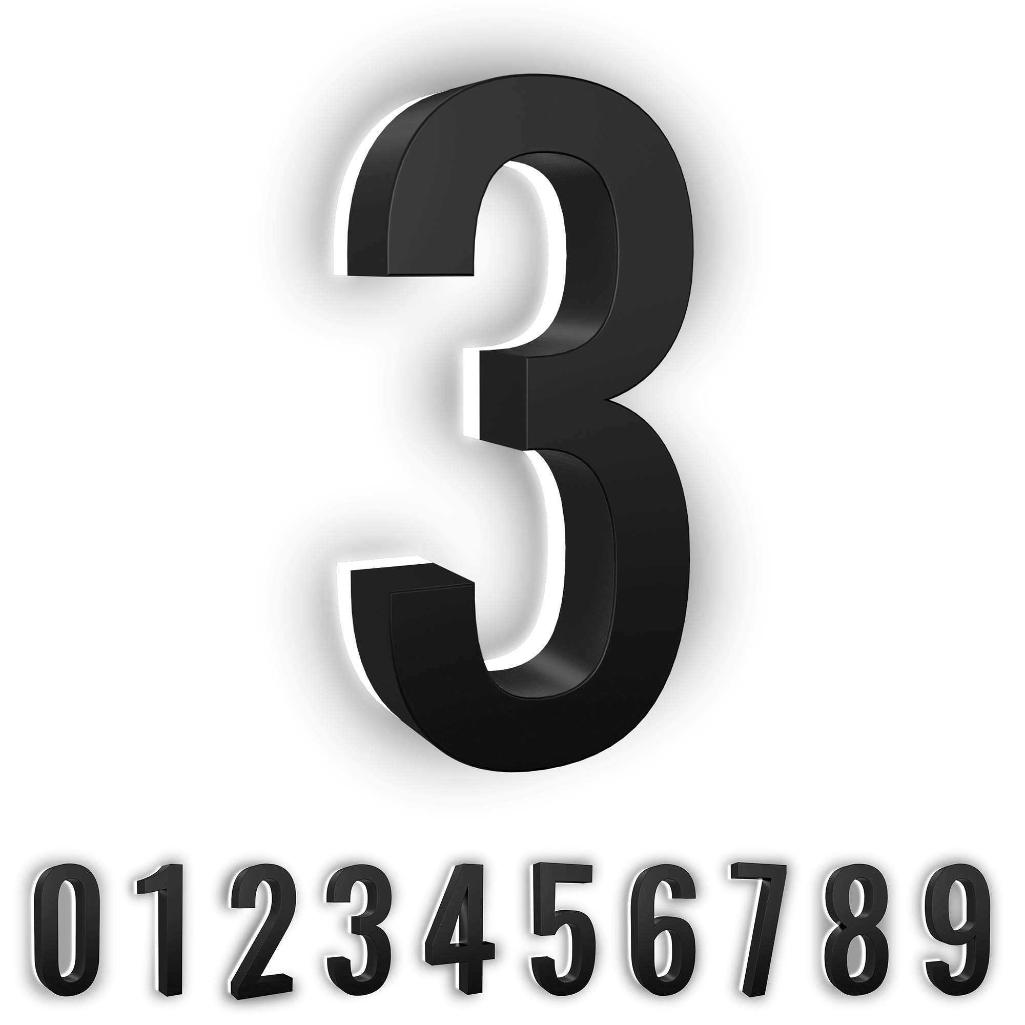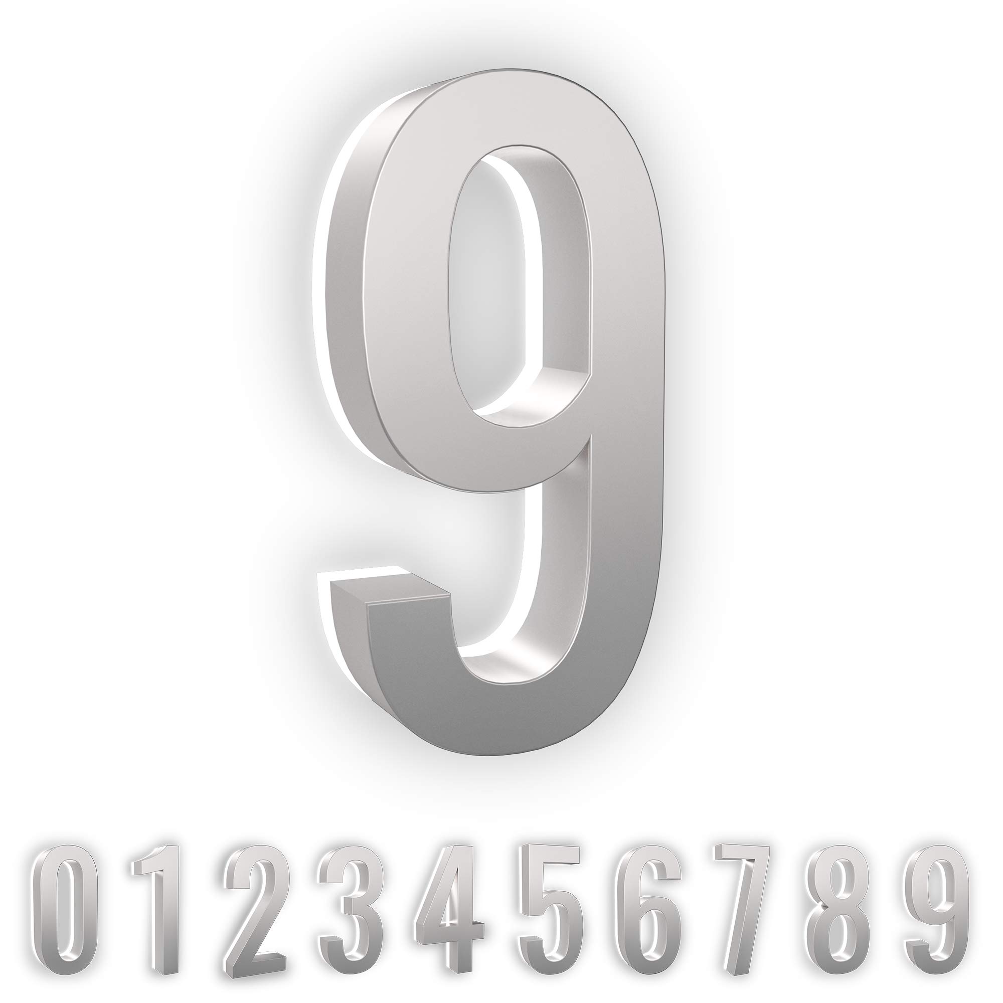 Give your house that modern look and feel with our stylish contemporary LED Floating Numbers. LN Lumanumbers address numbers feature LED backlighting to help illuminate your house numbers at night. Each 5-inch address number is made from stainless steel and beautifully handcrafted with a high-quality finish for a sleek, modern look that provides instant curb appeal. Our long-lasting numbers are extremely durable and weather resistant. Product Details: Light is emitted from behind the numbers, softening the output. Adjust brightness with 1/4" and 1/2" spacers included with each number, or mount flush to further reduce light. All numbers come protected with a 2-year warranty. Available in three finishes: Black, Bronze, or Brushed Nickel Product Specifications: