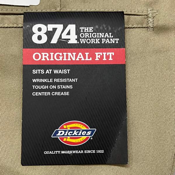 DICKIES Men's Original 874 Original Fit Tapered Leg Work Pants Condition: New Size: 38X32 Color: Khaki Model: 874KH Description: Reinforced Seams Signature Wide Tunnel Belt Loops Welt Back Pockets With a Secure Button Closure Sturdy Workwear Waist Band Hook and Eye Waist Closure With Zipper