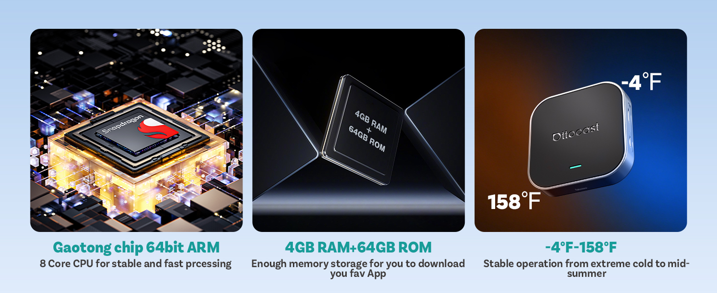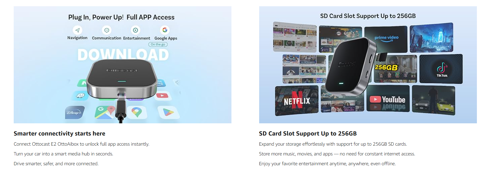 【Blazing-Fast Performance】 Powered by the Android 13 system, this Ottocast smart AI box transforms your car screen into a smartphone-like device. No more lag, black screens, or random restarts—just instant response and stable performance, even on long drives.
