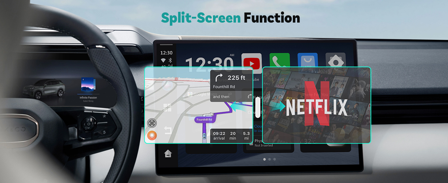 【Split-Screen Multitasking, One Screen – Double Fun】 More than just a car video player, this car streaming box supports true split-screen multitasking. The driver follows turn-by-turn direction, while passengers enjoy Netflix, YouTube, Hulu, or TikTok on the same display. Say goodbye to waiting and hello to shared entertainment on every trip.