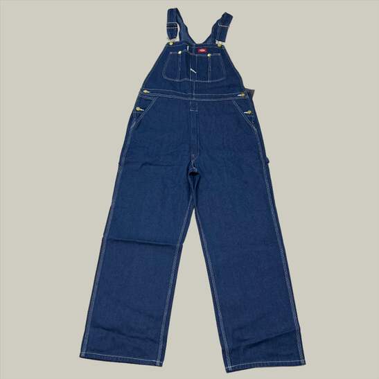 DICKIES Classic High Back Wide Leg Bib Overall Men's 36X34 Rinsed Indigo Blue