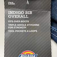 DICKIES Men's Classic High Back Duck Bib Overall Condition: New Size: 36X34 Color: Rinsed Indigo Blue Model: DB100RNB Description: Crossover High Back With a Wide Leg for Boot Coverage Wide Legs for Boot Fit Triple-Stitched Seams Large Bib Pocket With Pencil Divider Utility Loop and Dual Tool Pockets Sturdy Brass Zipper Fly