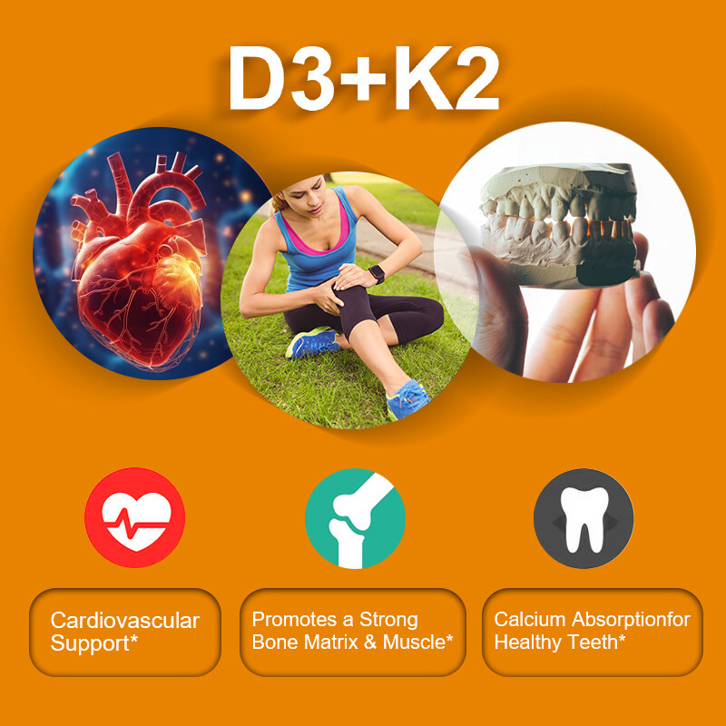 10/60/120PCS Vitamin K2 with D3 Capsules for Heart and Bone Health Supplement