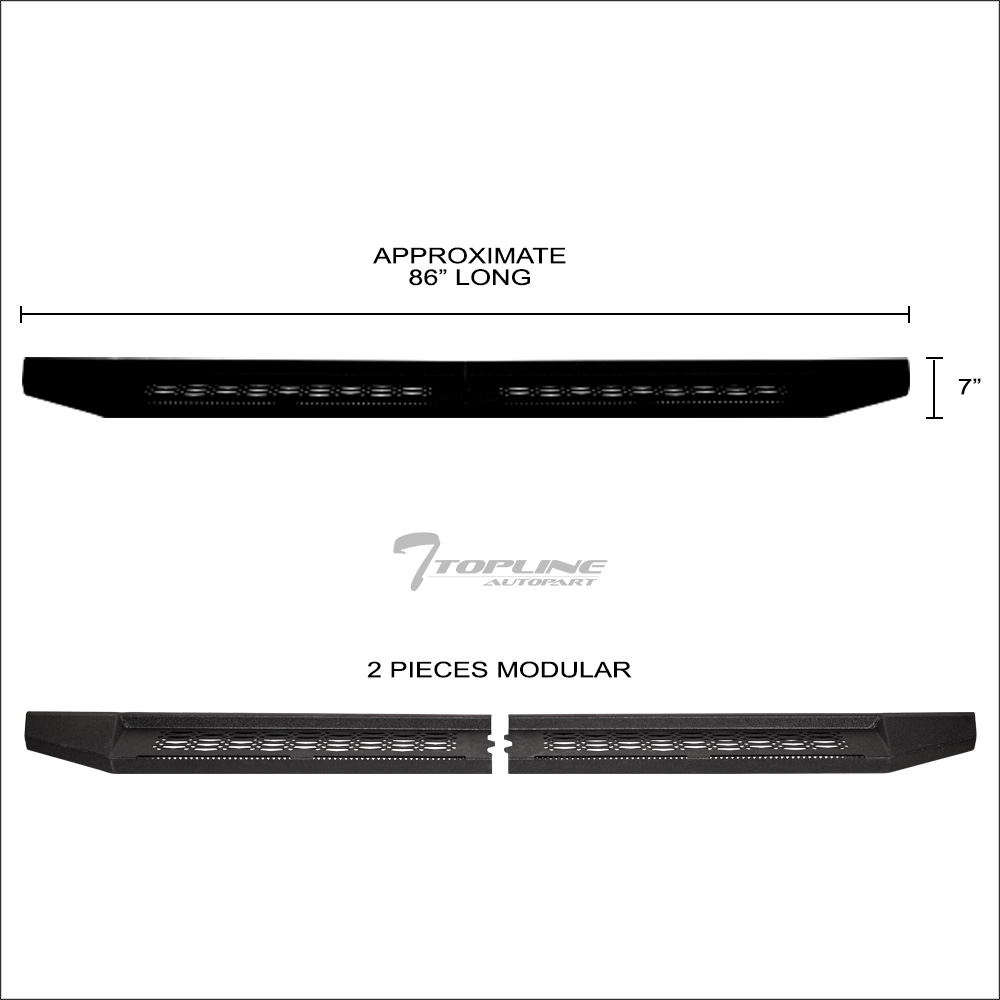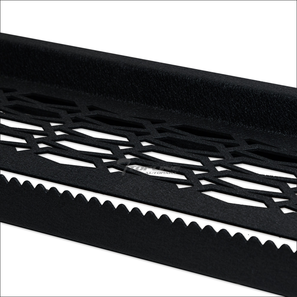 7" Width Modular Style Running Boards Wide Design Provides More Stable Stepping Ground Heavy Duty Steel With Warranty Against Rust And Corrosion Pentagon Pattern Step Surface With A Jagged Edge Ensures Anti-Slip All Weather Condition Step Surface Ensures Secure Footing Textured Black Coating Finish Running Boards Are Purpose Built To Install On Your SUV Or Crossover Vehicle & Provide A Stylish Installation May Require Minor Drilling To Fit On Certain Applications & Vehicle Specific Bracket Are Included With Every Order