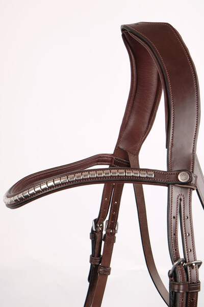 The Montar Browband with Silver Clinchers is a beautifully designed leather browband that adds a touch of elegance and classic style to any bridle. The silver clinchers give it a stylish and eye-catching look that is perfect for competitions or special occasions. This browband is also found on the Normandie Deluxe Bridle, which is a highly sought-after bridle in the Montar collection.