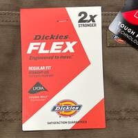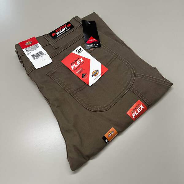 DICKIES Men's Flex Regular Fit Straight Leg Double Knee Pant 2X Stronger Condition: New Size: 38X30 Color: Stonewashed Mushroom Model: DP802SMR1 Description: FLEX Fabric LYCRA TOUGH MAX technology for exceptional performance Active Waist Stretches With You, so You Never Feel Restricted Two Side Pockets Two Patch Pockets at the Back Hidden Tool Pocket at Side Leg Double Knee Reinforcement for Durability Reinforced, Triple-Stitched Seams Wont Unravel Top of the Pants Sit Slightly Below the Waist