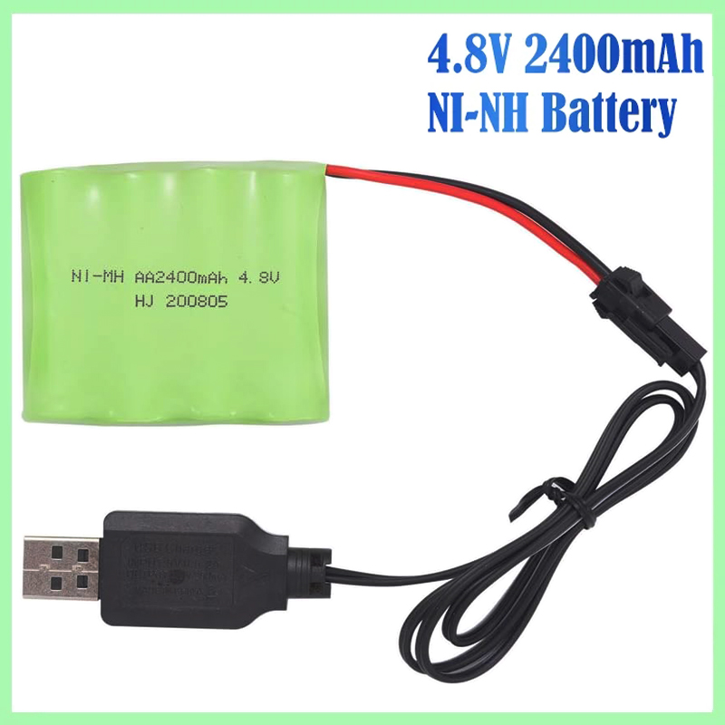 4.8V 2400mAh Ni-MH AA Rechargeable Battery Pack with SM-2P 2Pin Plug and USB Charger Cable for RC Truck Cars Vehicles