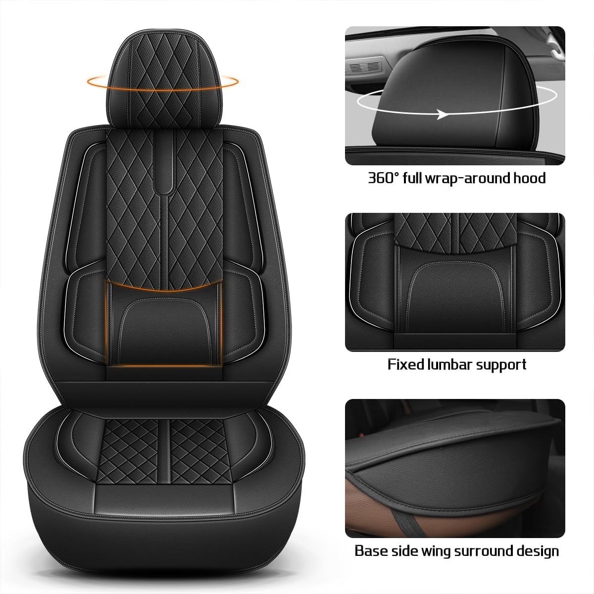 【Full-Surrounding Protector】 The first layer of seat cover is artificial leather. It is waterproof and impermeable. Easy to clean, just wipe gently with a damp cloth. Eco-friendly, non-toxic, scratch-resistant leather.