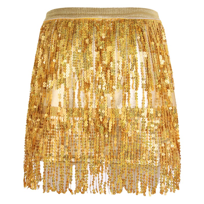 US Women's Sequin Fringe Skirt Festival Double Layer Glitter Tassel Dance Skirts