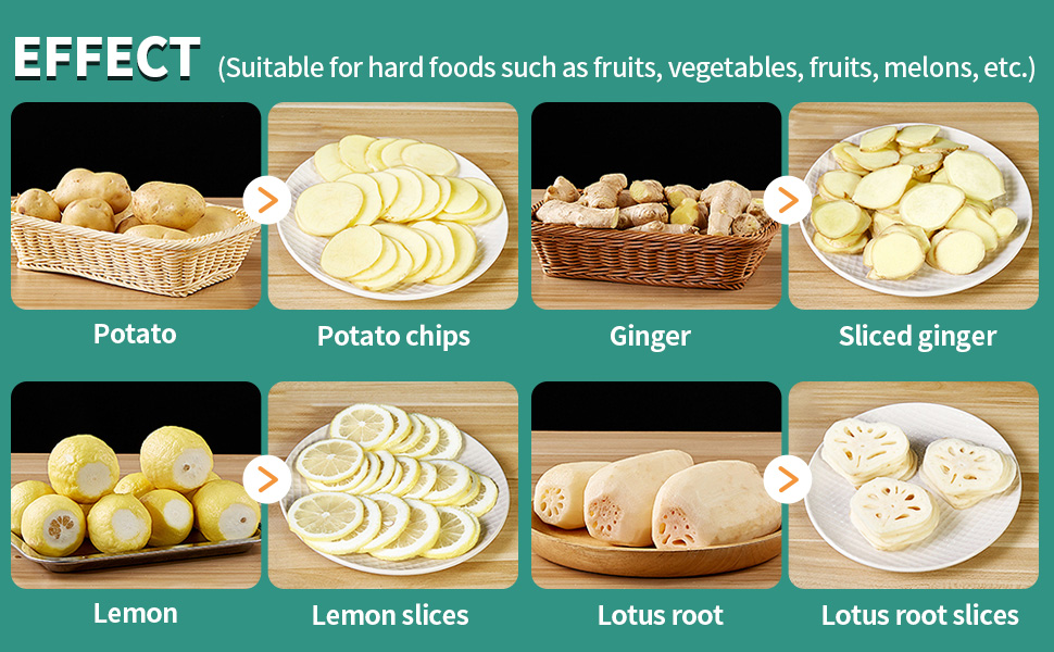 0-0.4’’ THICKNESS ADJUSTABLE---This versatile vegetable slicer features an adjustable thickness setting that allows you to slice your vegetables as thick or thin as you like, up to a maximum thickness of 10mm (0.4''). Simply use the bolt located in the center of the machine to adjust the thickness to your desired setting. This innovative feature provides you with the flexibility to prepare vegetables for your meals in various ways, depending on the recipe or your personal preference.