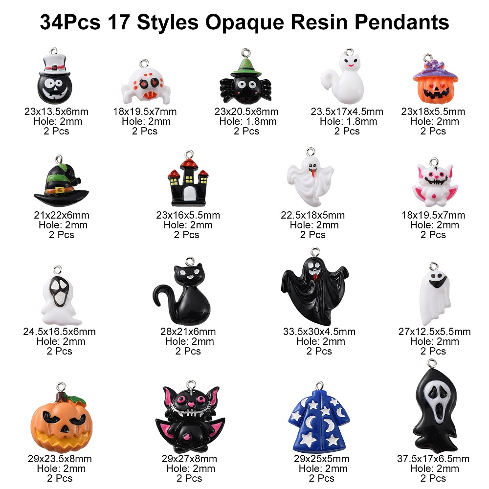 Package: 34 Pieces in total, 17 styles, 2 Pcs/style, which can meet your different needs of matching and suit for kinds of Halloween accessories making. Enough quantity will not limit your idea.