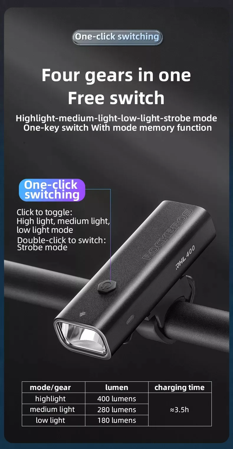 Specifications of ROCKBROS Bicycle Light Aluminum Alloy Bike Head Light Waterproof MTB Road Bike Lights USB Charging Cycling Flashlight Quickly Remove Bicycle Accessories
