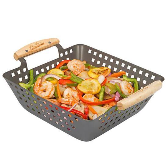 Grill meat, vegetables, seafood, stir-fry and more in the non-stick basket with wooden handles that allow you to safely place and remove your wok from the grill to serve your food.