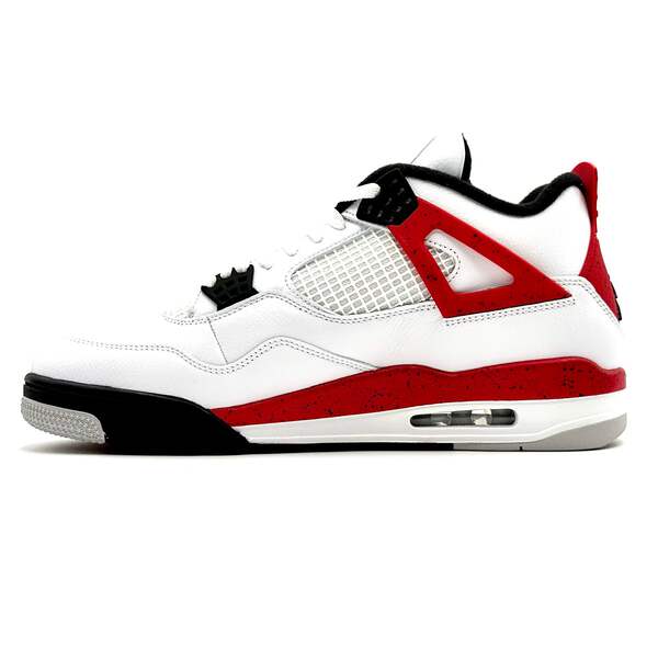 Elevate your style with the iconic Air Jordan 4 Retro 'Red Cement'. This legendary silhouette returns with its classic colorway that defined basketball culture in the late 80s. The crisp white leather upper is perfectly contrasted by bold fire red accents and neutral grey details, creating a timeless look that commands attention both on and off the court.