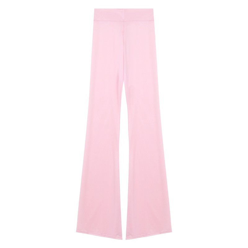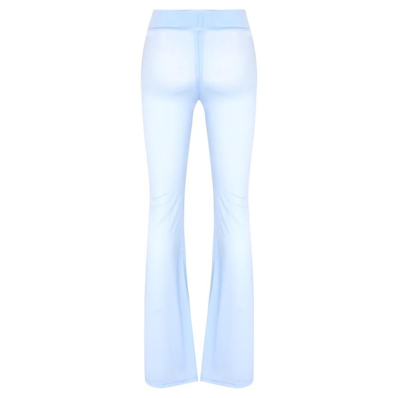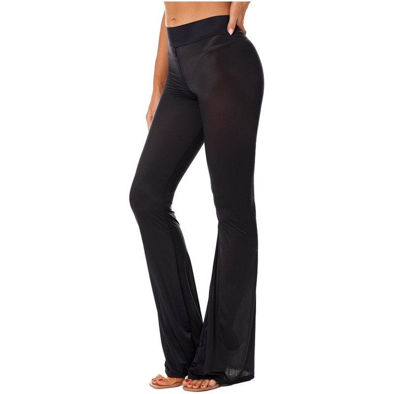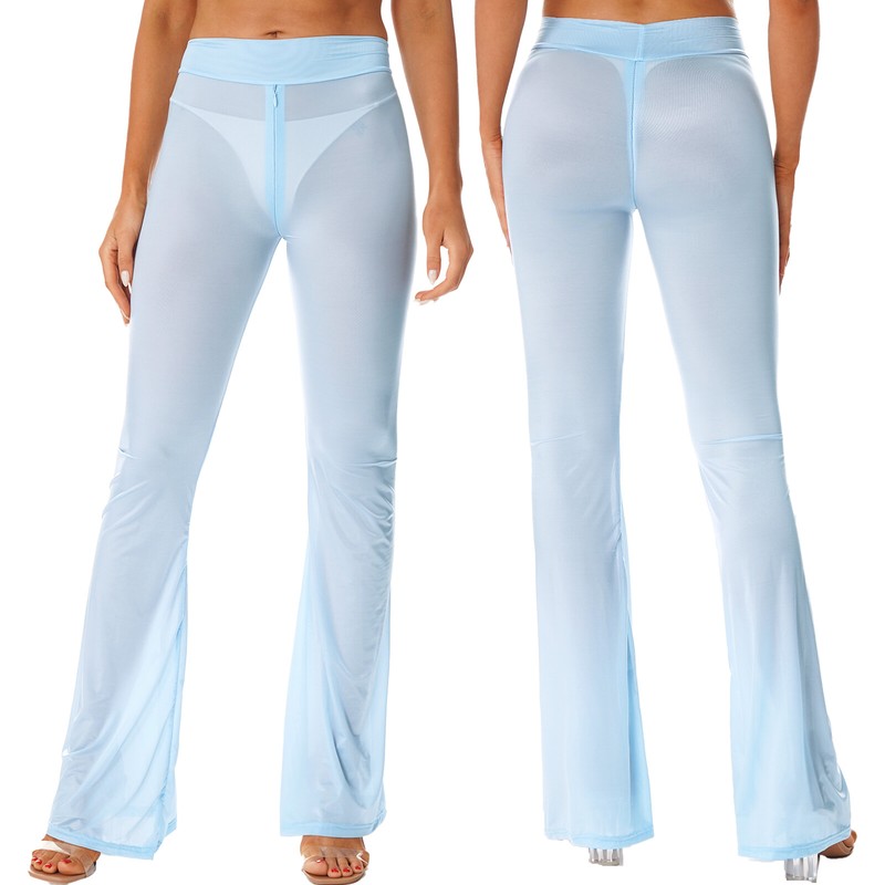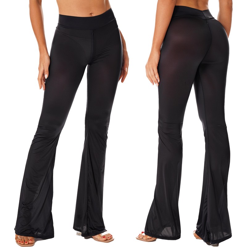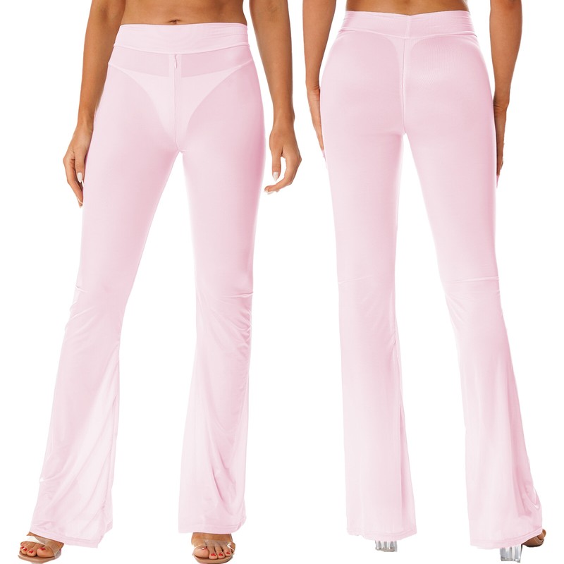 Womens Semi See-Through Yoga Flared Pants Zipper Crotch Bell-Bottomed Trousers.
