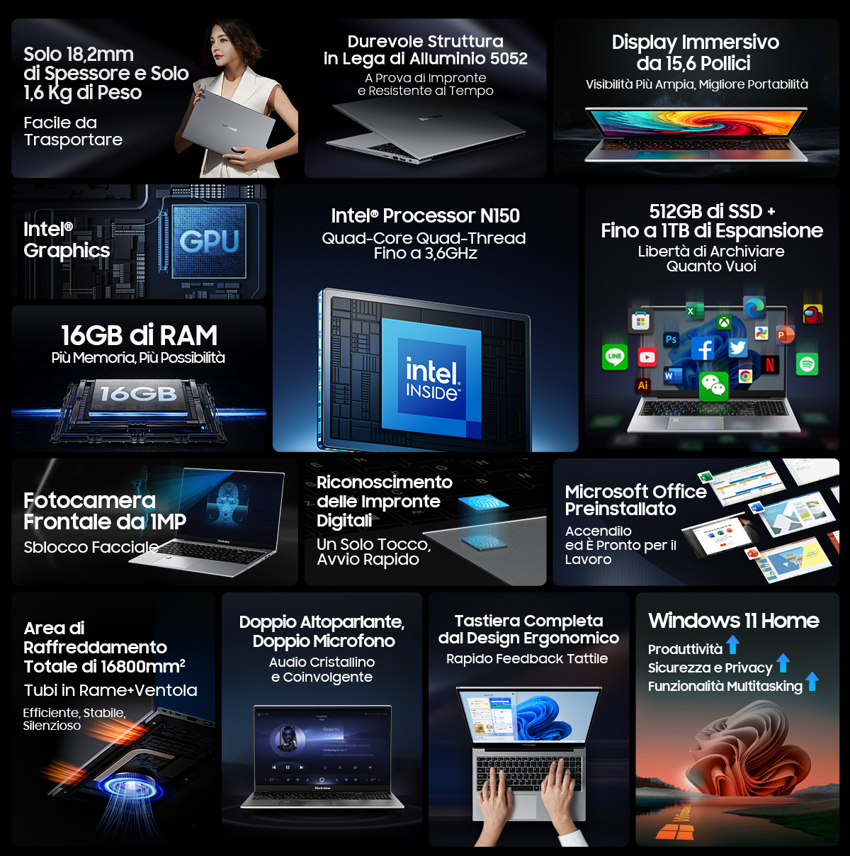 - 🌻🌻【Prestazioni Superiori】Blackview AceBook 8 PC Portatile è dotato di processore Intel Core N150 di 12a generazione e sistema operativo Win11, che può raggiungere una frequenza turbo massima di 3,6 GHz per prestazioni superiori, assicurando un'esperienza di light office più fluida, veloce e senza problemi. Funzionando senza problemi con più applicazioni, pagine del browser e video, garantisce un'esperienza senza precedenti, sia che si lavori, si studi o si giochi.