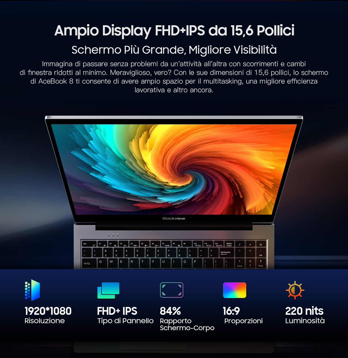 Display------- 15,6 pollici 1920*1080 FHD+IPS, rapporto schermo-corpo dell'84%