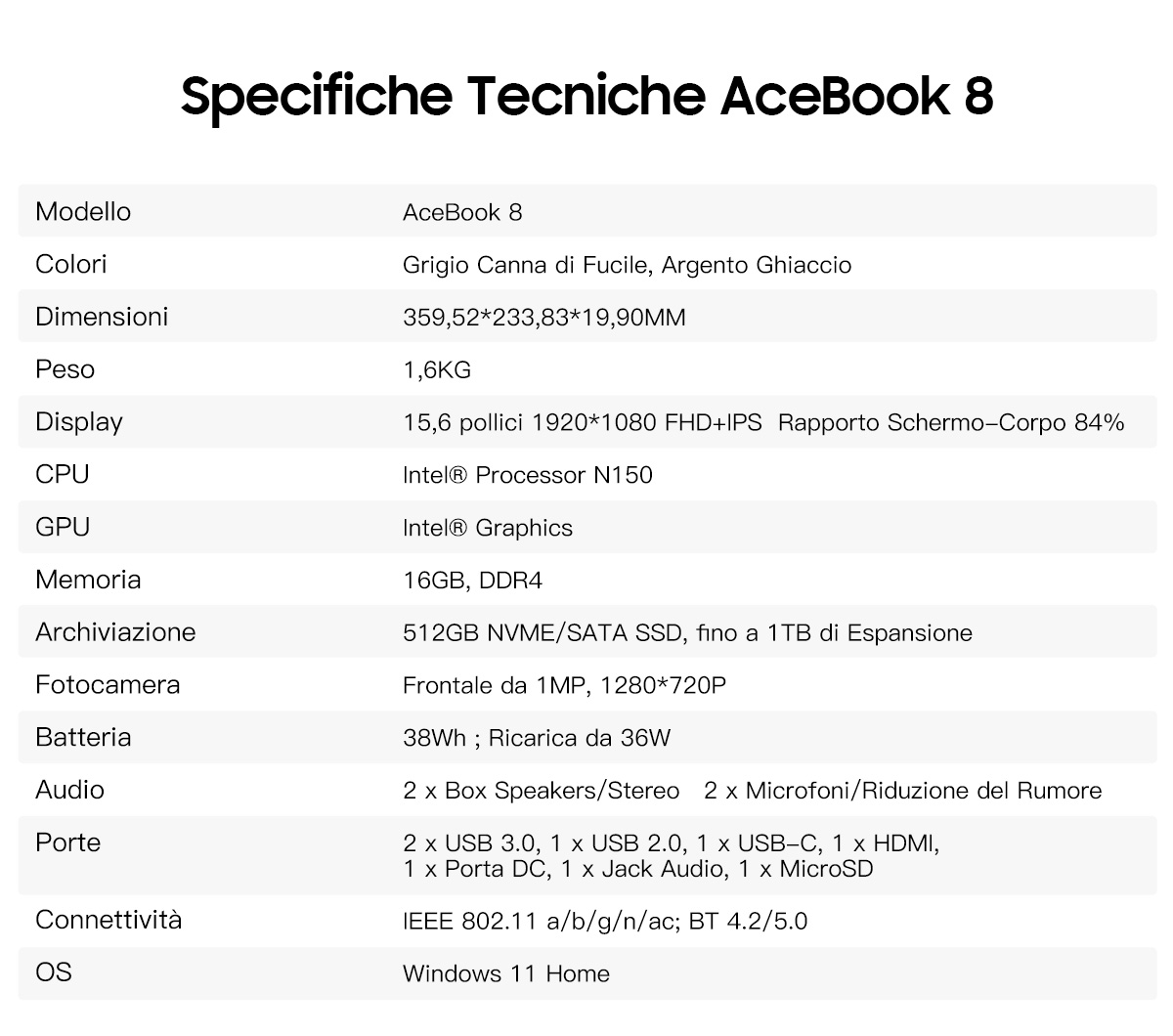 Blackview Computer portatile AceBook 8 ----- 16 GB + 512 GB