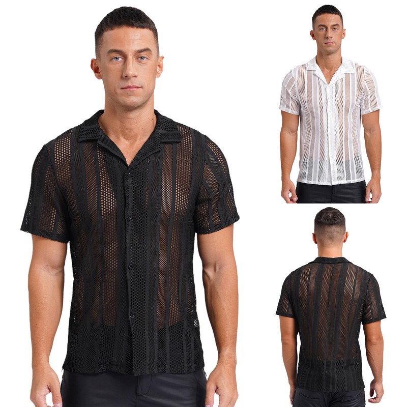 Shirt for men designs with round neck, short sleeve, shiny sequins and sheer mesh, pullover T-shirt makes you dazzling and attractive.