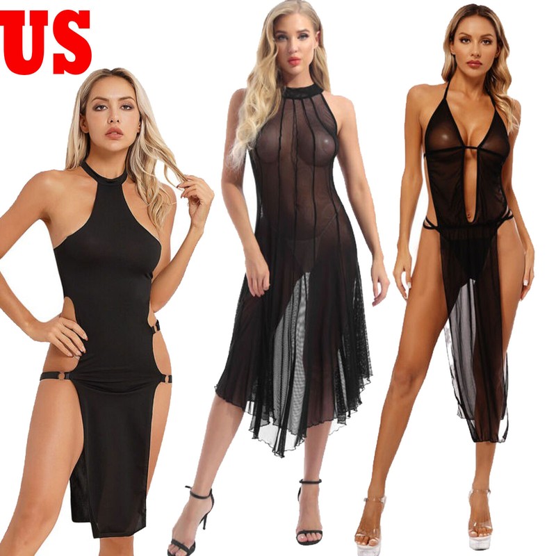 Womens Scoop Neck Wide Shoulder Strap Bodycon Dress Hollow Out Mini Dresses Lingerie Nightwear.