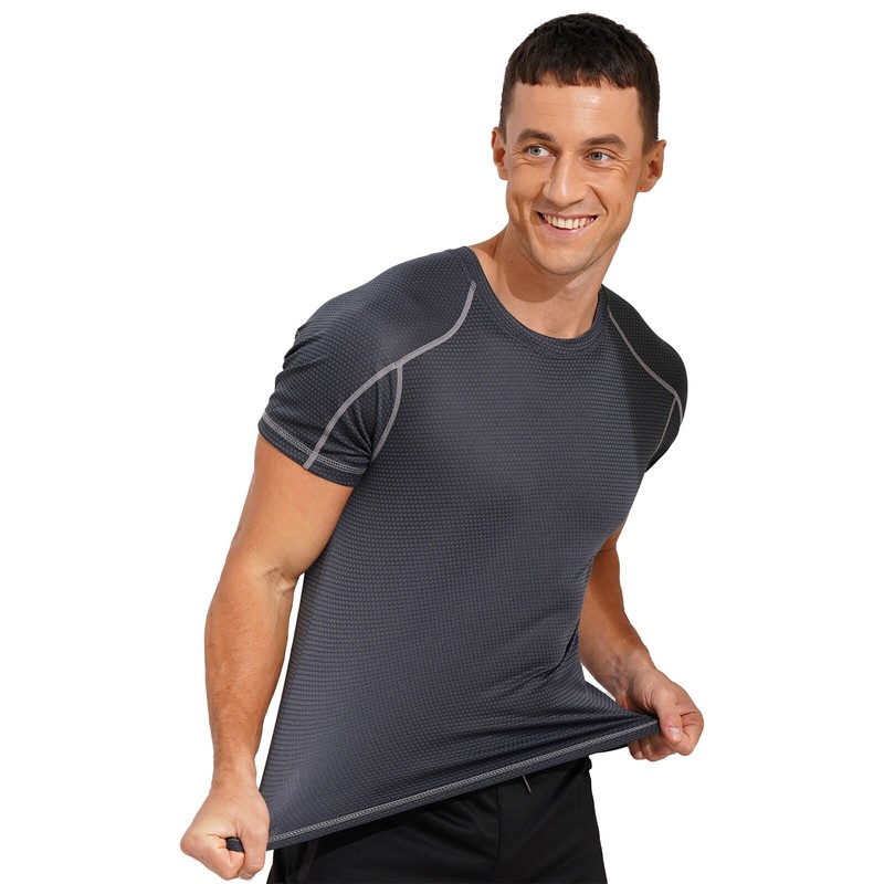 Short sleeve and round neckline, simple solid color, sport style striped print in edge, the unique stretchy stretch fabric makes your activities more comfortable and free.
