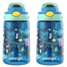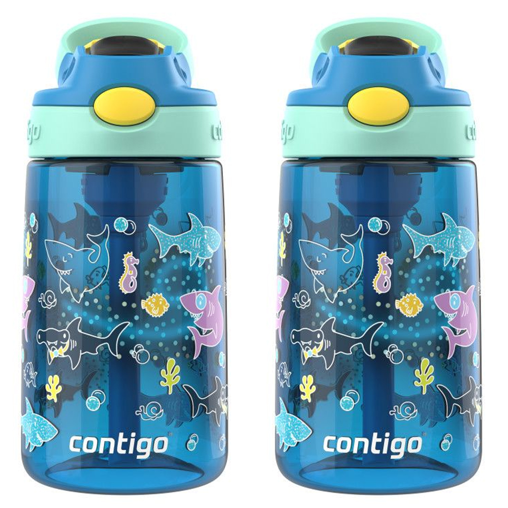 Kids are constantly on the go. Keep them hydrated and happy with the thoughtfully designed Contigo Kid's 14 oz. Aubrey AutoSpout Straw Water Bottle 2-Pack. Little ones love the colorful look, tactile feel, and cool pop-up features. You will love that it makes cleaning up spills one less thing to worry about. This kid-friendly water bottle will not leak during transport or spill while sipping, and can be used with just one hand. The innovative AutoSpout design features a sturdy silicone straw that flips up with a touch of a button and folds back inside to stay protected when not in use. The integrated carry handle is comfortable for little hands to use. The lid hinges open for thorough cleaning and the lid is top-rack dishwasher safe. This bottle is suitable for ages 3 and up.