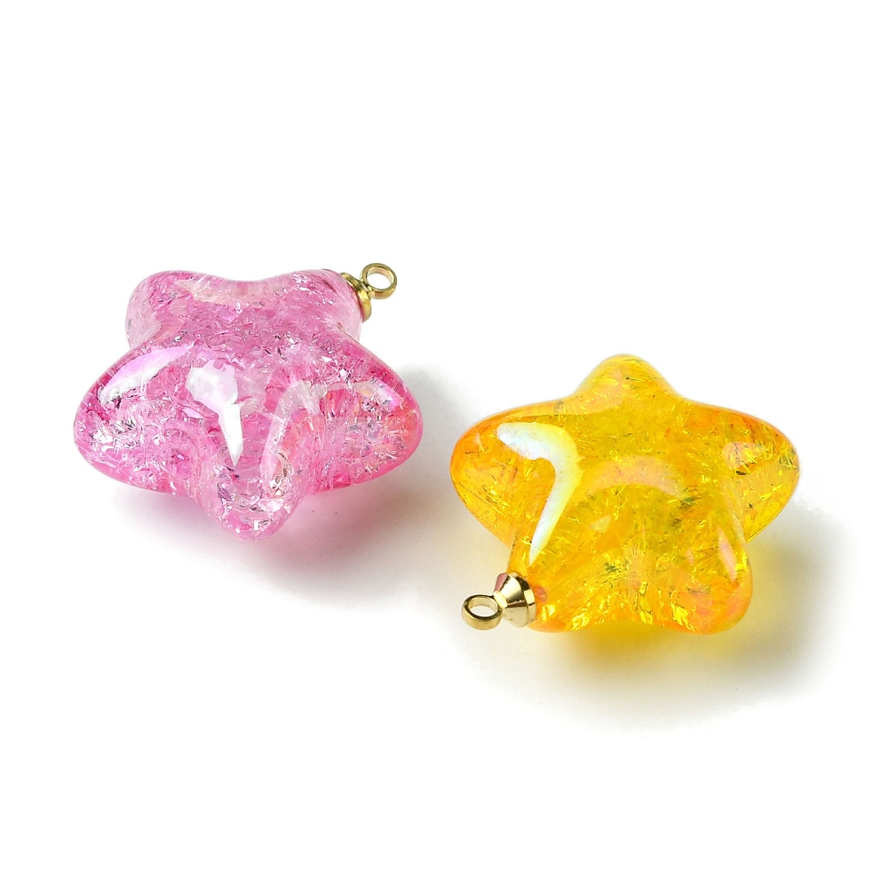 50x Acrylic Crackle Star Charm Pendants with Iron Loops for DIY Jewelry Making