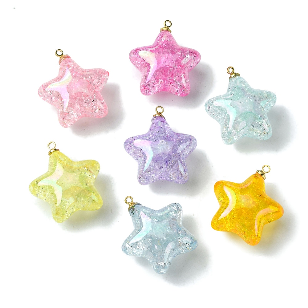 Transparent Crackle Acrylic Pendants, with Iron Loops, Star, Mixed Color