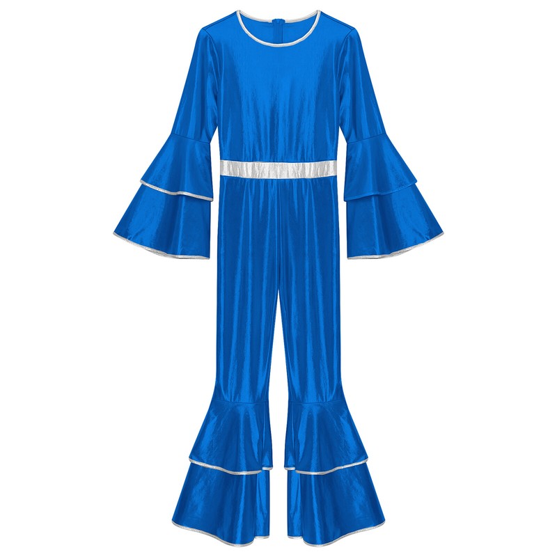 US Womens Vintage Shiny Jumpsuit Disco Hippie Dance Nightclub Halloween Costume
