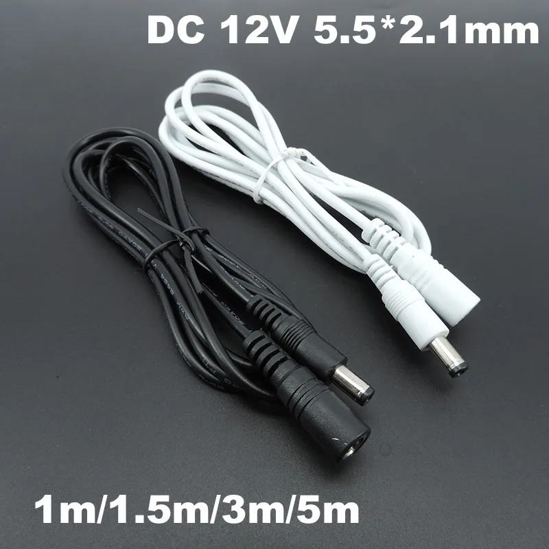 10pcs 1/1.5/5m white black DC Power supply Male to female connector Cable Extension Cord Adapter Plug 20 22awg 5.5x2.1mm for strip q