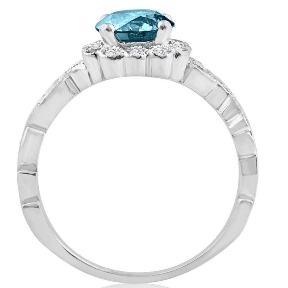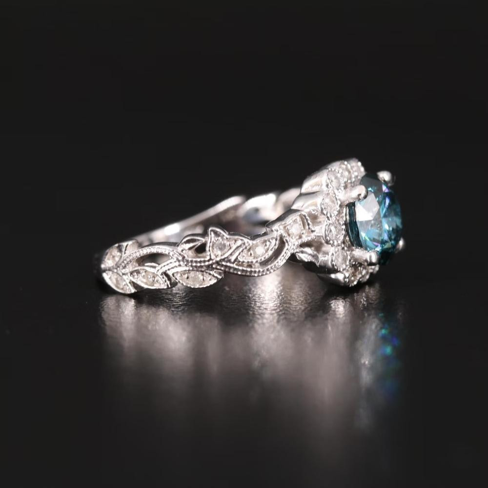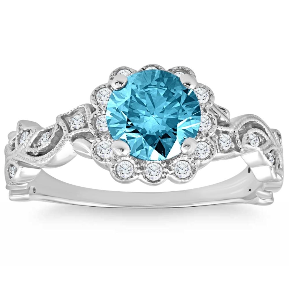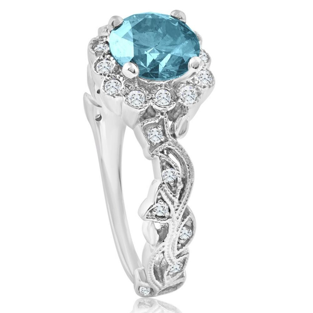 1 3/4Ct Blue Diamond Halo Engagement Ring 14k White Gold Lab Grown Vine
