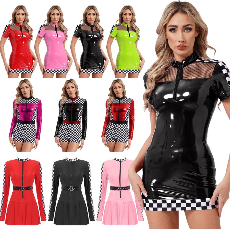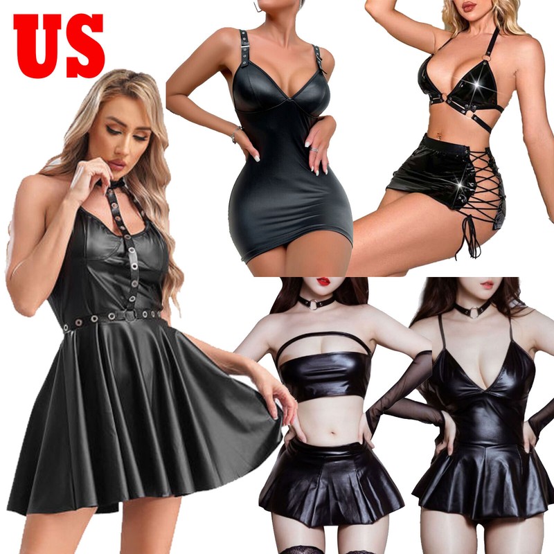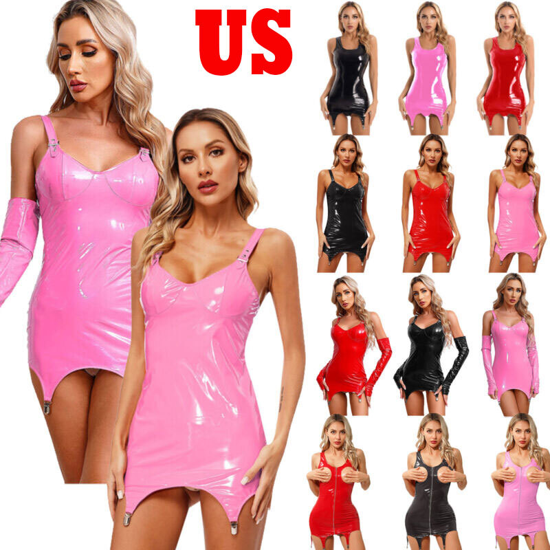 Womens Glossy Short Sleeve Bodycon Dress Fashion Mock Neck Mini Dresses Clubwear.