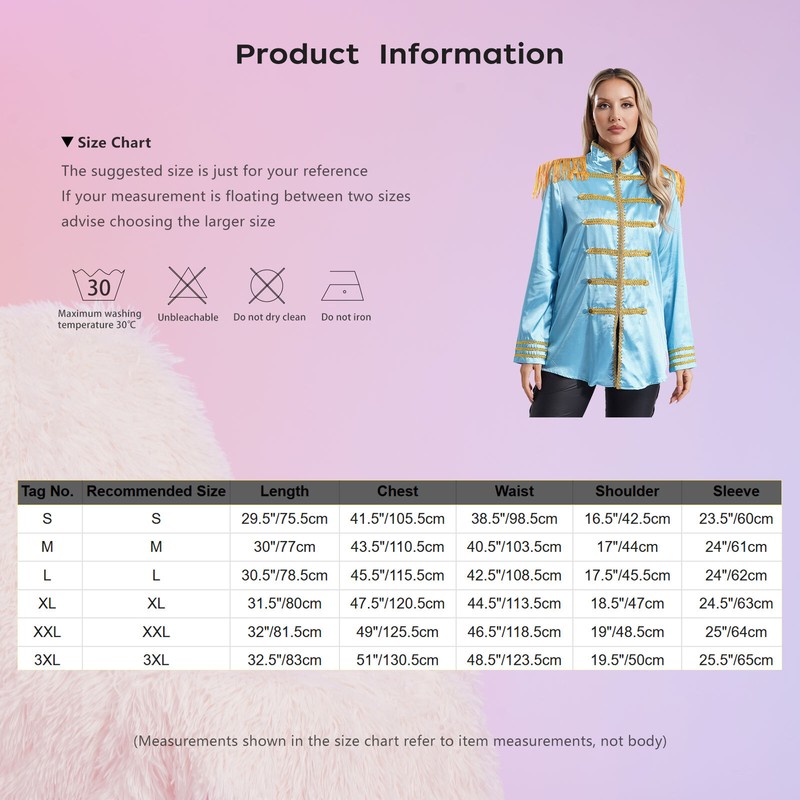 Suitable for Halloween, stage costumes, cosplay, clubwear, dress-up party, masquerade, role play, carnivals and so on. Size Chart: The suggested size is just for your reference. If your measurement is floating between two sizes, advise choosing the larger size. (Measurements shown in the size chart refer to item measurements, not body)
