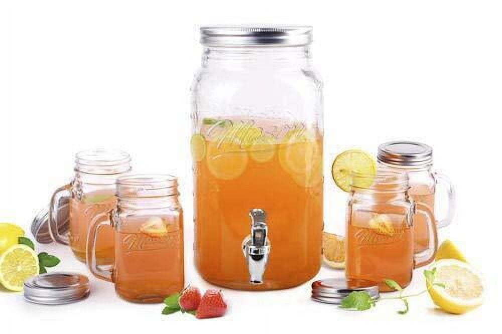 Mason 1 Gallon Beverage Dispenser With 4 Mason Jar Mugs Tea Lemonade