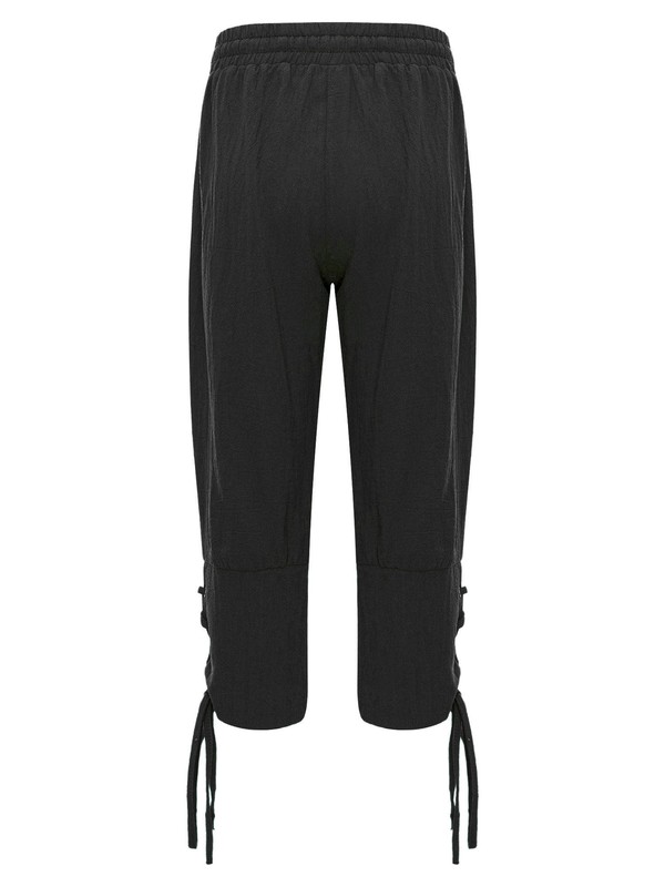 Solid color ankle length pirate pants for child size, designed with adjustable lace-up banded cuffs at calf.