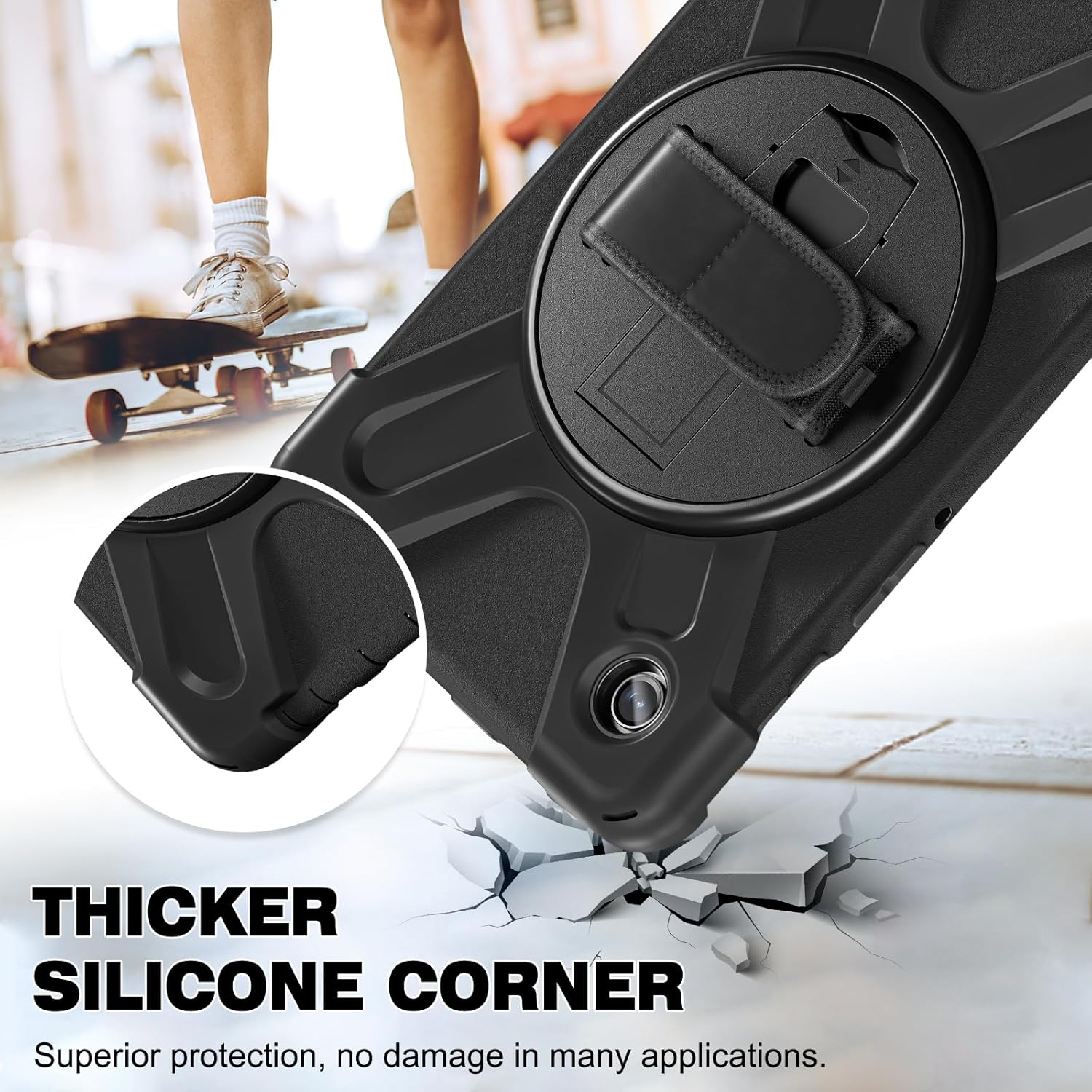 - [MILITARY PROTECTION & BUILT-IN SCREEN PROTECTOR] The shockproof case, crafted from liquid silicone and tested to military-grade drop standards. With airbag design on all four corners, the case provides cushioning upon impact to prevent any damage to your tablet. Complete with a screen protector, it shields the screen from scratches. Experience maximum protection for your tablet in every way possible.