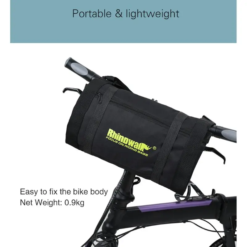 this storage the bag with a multi-functional handle, strap or straps may be used, the bag is fixed to the handlebar or frame.