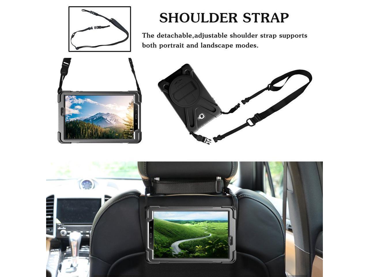- [SHOULDER & HAND STRAP] The Samsung Galaxy Tab A 10.1 inch 2016 case with a detachable shoulder strap, allowing you to free up your hands outdoors and effortlessly carry your tablet wherever you go. Additionally, featuring an inner hand strap within the cover, it enables you to securely grip your device while using it, protecting against accidental slips that could lead to damage. Stay hands-free and secure with this versatile case for ultimate convenience and peace of mind.