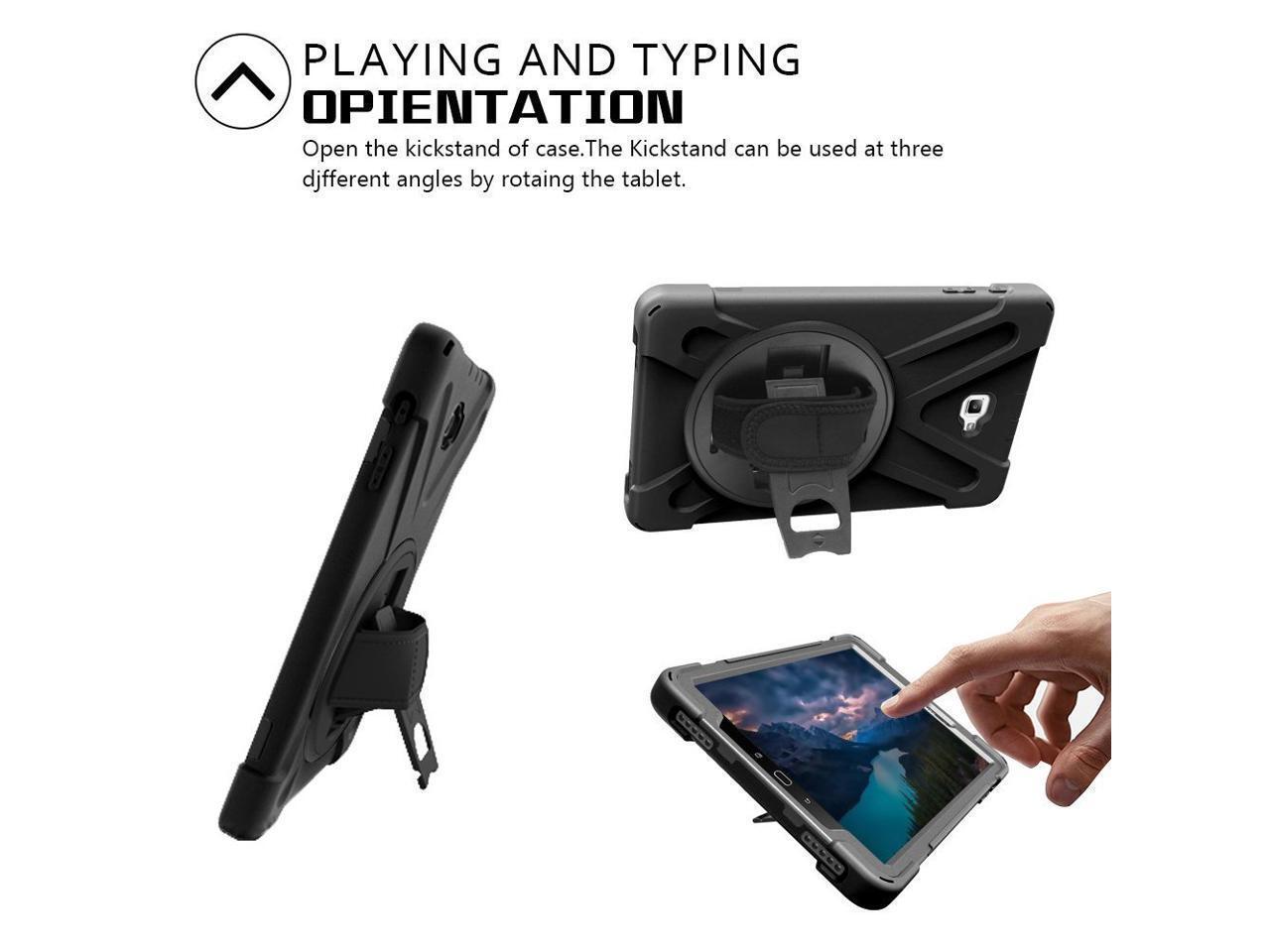 - [KICKSTAND & PENCIL HOLDER] The Samsung Galaxy Tab A 10.1 inch 2016 case with a rotating stand that offers multiple viewing angles, allowing you to free up your hands for studying, working, or enjoying your favorite shows. Also built-in a Pencil slot, storing and retrieving your stylus is simple and secure – say goodbye to the frustration of misplacing or losing your Stylus Pen.(Stylus Pen is Not Included !)