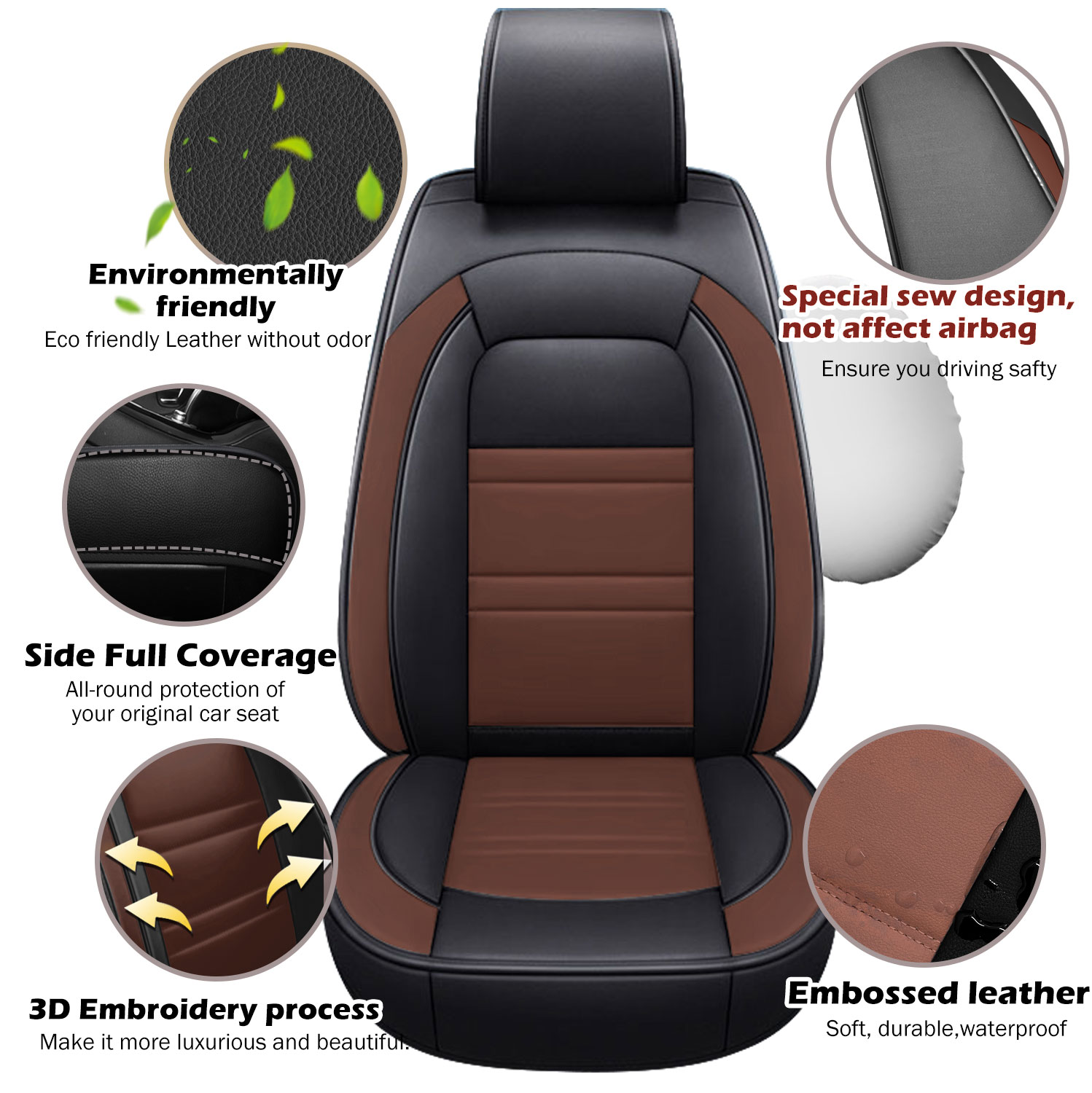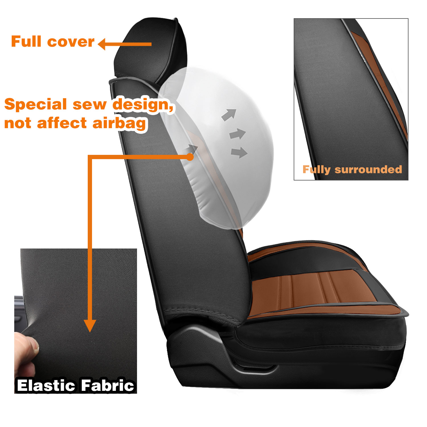 Airbag Compatibility: The seat cover has been designed to be compatible with airbags, with enough space reserved to allow for their deployment in case of an emergency. The seat belt slot has also been reserved, ensuring that it does not interfere with the use of the seat belt.
