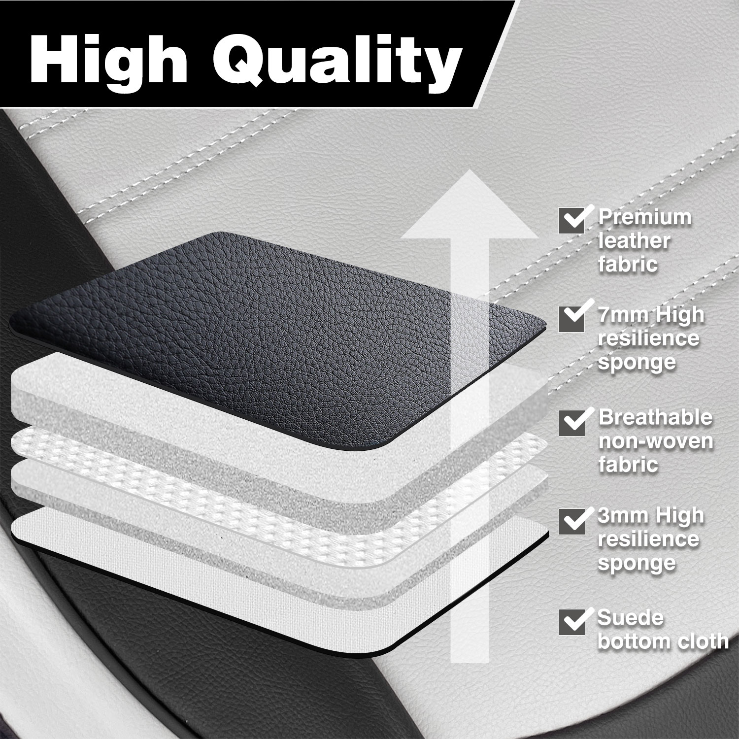 High-Quality Material: Seat cover is made of high-quality materials, including soft and durable faux leather on the surface, a high-rebound sponge in the middle for maximum comfort, and non-slip fabric on the bottom layer to keep the cover in place. It is also waterproof, making it easy to clean and maintain.